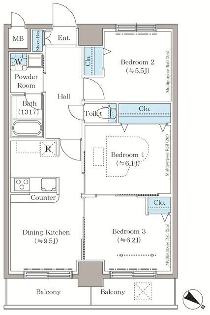 | 間取 | 1K ~ 3DK | 面積 | 30.93㎡ ~ 66.85㎡ |