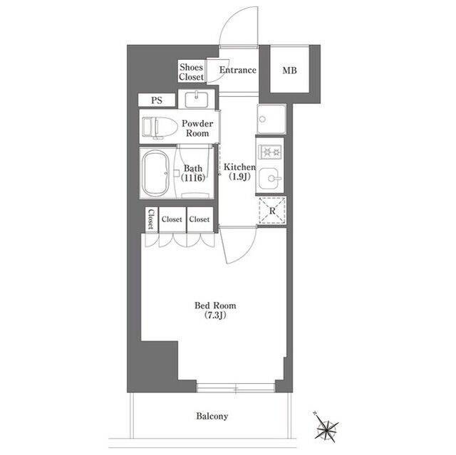 広さ25.03㎡のお部屋です。