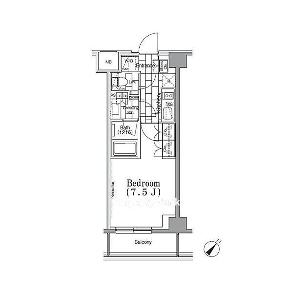 広さ25.02㎡のお部屋です。