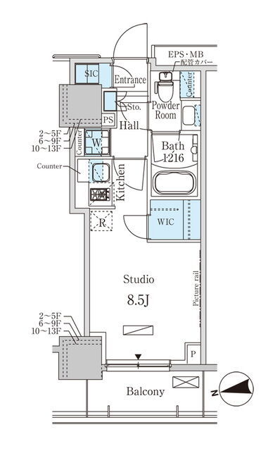 建物階数 | 地上13階 | 部屋階数 | 4階 |